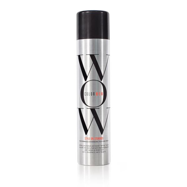Color Wow Style on Steroids Texturizing Spray delivers instant big hair, long-lasting texture and record "setting" results without stiffness. The unique moisturising formula won't dry hair or glue strands together, so hair is never sticky or stiff. The transparent texturisers won't cloud or dull colour.