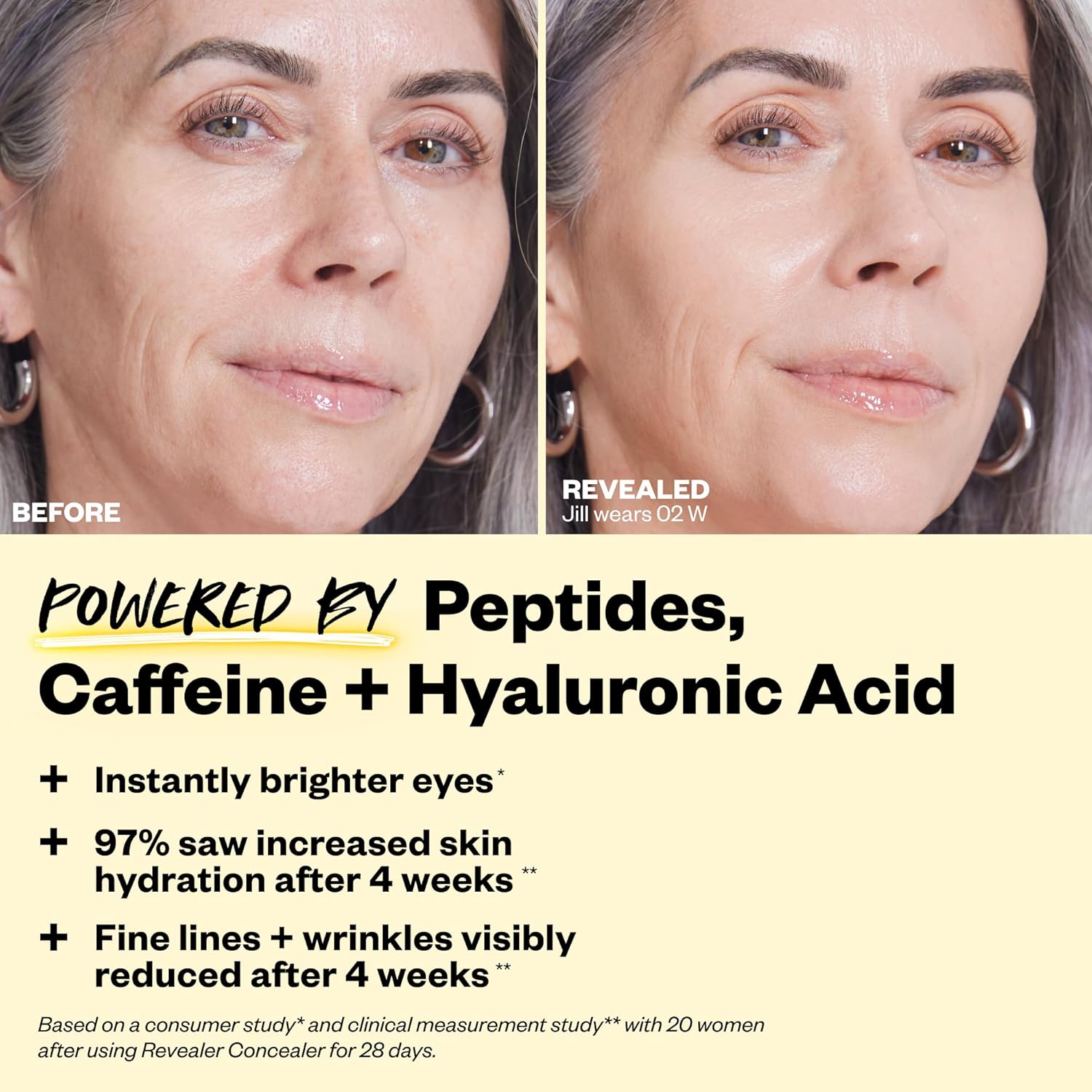 MEDIUM COVERAGE MAKE-UP: Our Revealer Concealer is your beauty ally in achieving a truly flawless complexion. It's designed to strike the perfect balance – providing the right amount of coverage to conceal blemishes and dark circles while allowing your natural beauty to shine through.HYALURONIC ACID INFUSED: Unlike traditional concealers that may leave your skin feeling dry or cakey, our formula is designed to work with your skin, not against it. Hyaluronic Acid reduces the risk of the concealer settling into fine lines or creases, offering a solution for a more radiant and comfortable look.BRIGHTENS SPOT AND HYDRATES SKIN: Blend within our formula, Caffeine and Pink Algae Extract to work together to brighten and revitalize your skin, delivering a healthy, luminous refreshed glow appearance. Say goodbye to tired-looking eyes!MULTI-PURPOSE VEGAN EYE CREAM: Our concealer is more than just makeup; it's a multi-purpose beauty solution. Think of it as your all-in-one vegan eye cream that caters to both under and around your eyes. Get the benefits of an eye cream in one product while concealing.CLEAN BEAUTY COMMITMENT: Kosas is passionately dedicated to clean beauty, offering cosmetics that are free from harmful elements, such as mineral oil, talc, silicones, fragrances, parabens, sulfates, and phthalates. We pride ourselves on being vegan and cruelty-free! Find the perfect shade to match your skin tone. Discover your ideal match for a seamless and natural look.