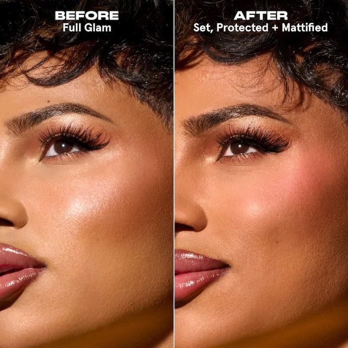 - An SPF-infused mattifying makeup setting spray that sets makeup for up to 16 hours and controls shine.