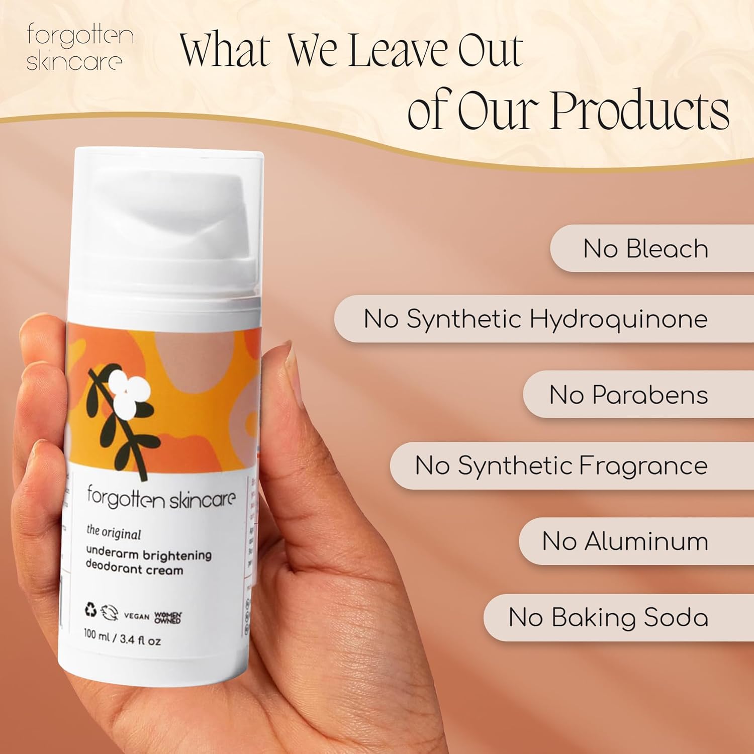 The Original vegan & cruelty free skin lightening cream is a dark armpit remover made with vitamin c & bearberry extract. Not your average armpit whitening cream.What is it? Use this dark underarm treatment for gentle underarm brightening instead of whitening underarms. Formulated without harsh chemicals.How it works? Salicylic acid (BHA exfoliant) acts as a body odor eliminator for women and men. A gentle dark spot remover for body and specially formulated as an armpit lightener.Clean ingredients: This all-in-one underarm lightening cream is made with clean ingredients such as aloe for soothing razor burn and jojoba oil for calming ingrown hair and razor bumps.What to expect? Results in 8-12 weeks. Varying factors like how often you shave, what other products you use or your level of underarm hyperpigmentation will impact results. We recommend taking a picture before you start using Forgotten Skincare.