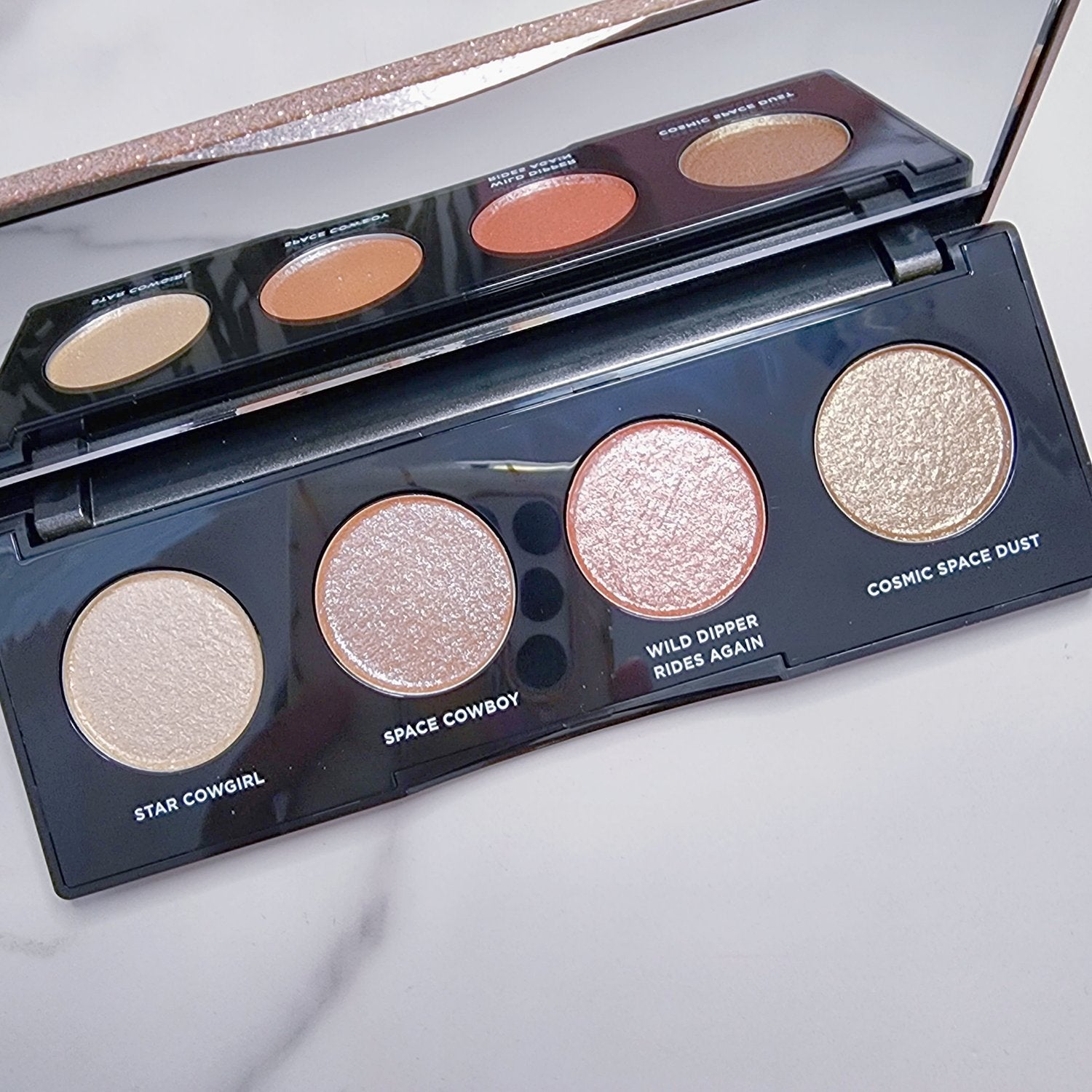 Our viral moondust collection goes super-charged with two limited-edition palettes: Space Rider and Galactic Cowgirl. Each palette features 4 wearable, glitter eyeshadow shades – including a mix of OG favorites (like Space Cowboy). Each shade features high-pigment color and a vibrant shimmery finish, lasting up to 16 hours. Create trending euphoric makeup looks with just a swipe! It’s time to sparkle with our buildable, caffeine-packed, velvety vegan eyeshadow formula. Or blend the glitter eye makeup with a brush for a diffused glow with radiant, long-lasting color payoff.